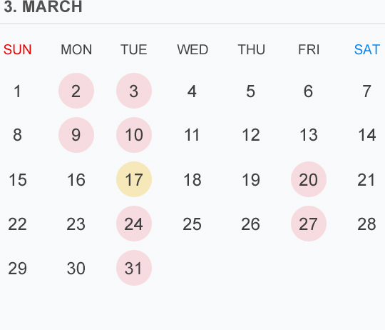 3月のカレンダー🗓です 🔴⚪️🟡はお休みを頂いております