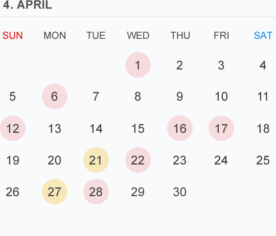 4月のカレンダー🗓です 🔴⚪️🟡はお休みを頂いております