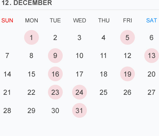 12月のカレンダー🗓です 🔴⚪️🟡はお休みを頂いております