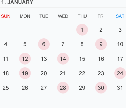 1月のカレンダー🗓です 🔴⚪️🟡はお休みを頂いております