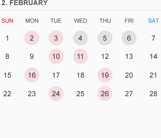 2月のカレンダー🗓です 🔴⚪️🟡はお休みを頂いております