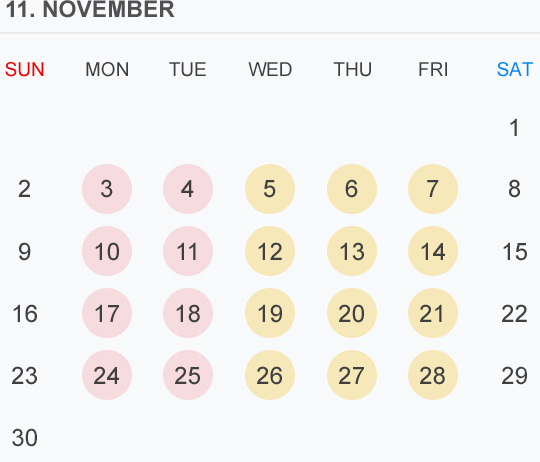 11月のカレンダー🗓です 🔴⚪️🟡はお休みを頂いております