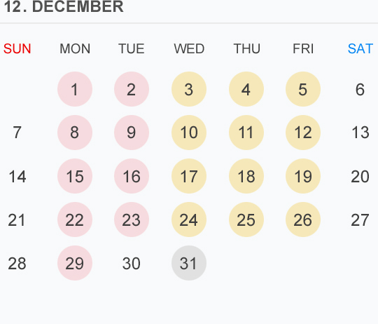 12月のカレンダー🗓です 🔴⚪️🟡はお休みを頂いております