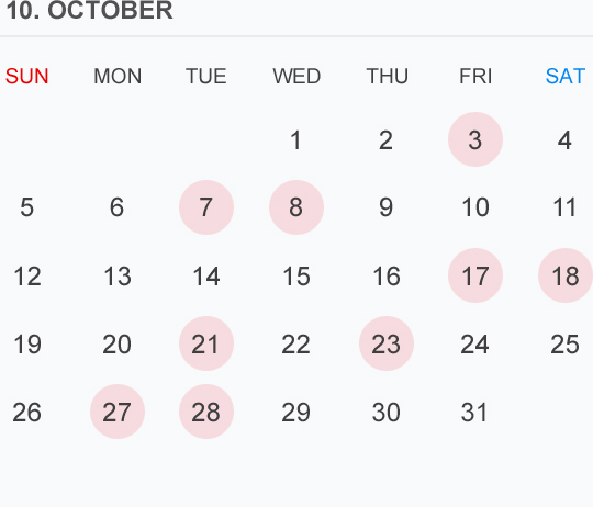 10月のカレンダー🗓です⭕️🟡⚪️はお休みいただいております