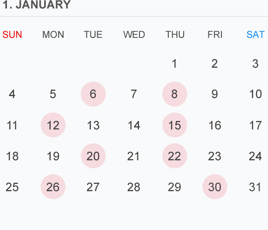 1月のカレンダー🗓です⭕️🟡⚪️はお休みいただいております