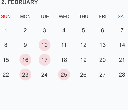 2月のカレンダー🗓です⭕️🟡⚪️はお休みいただいております