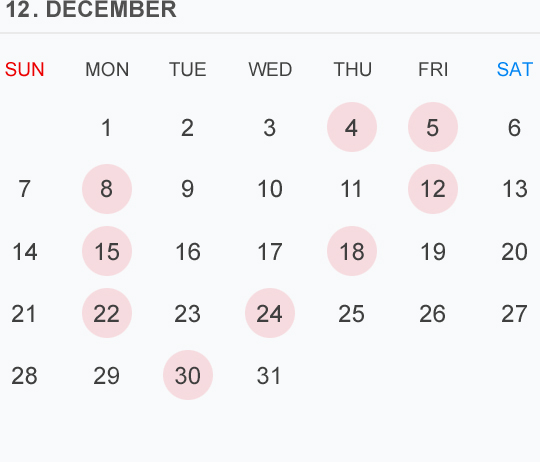 12月のカレンダー🗓です 🔴⚪️🟡はお休みを頂いております