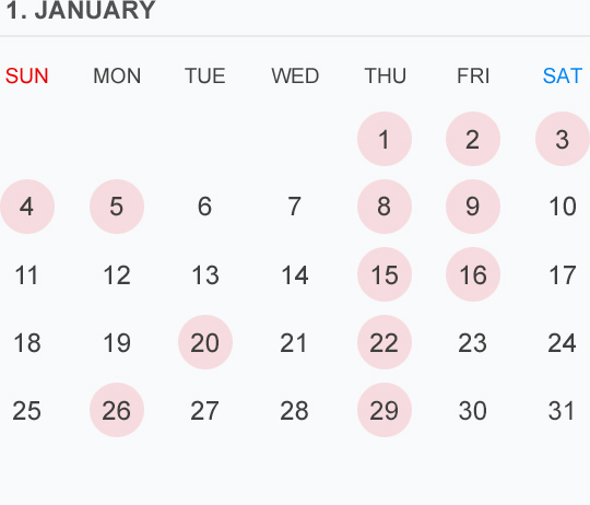 1月のカレンダー🗓です⭕️🟡⚪️はお休みいただいております