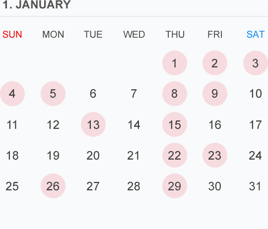 1月のカレンダー🗓です⭕️🟡⚪️はお休みいただいております