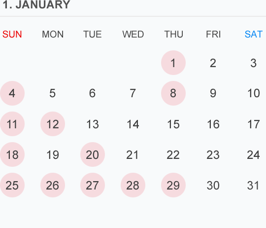 1月のカレンダー🗓です 🔴⚪️🟡はお休みを頂いております