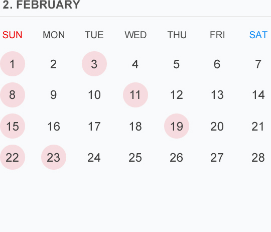 2月のカレンダー🗓です 🔴⚪️🟡はお休みを頂いております