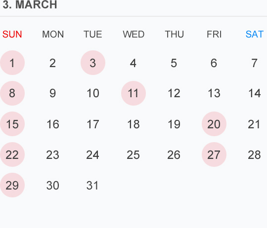3月のカレンダー🗓です 🔴⚪️🟡はお休みを頂いております