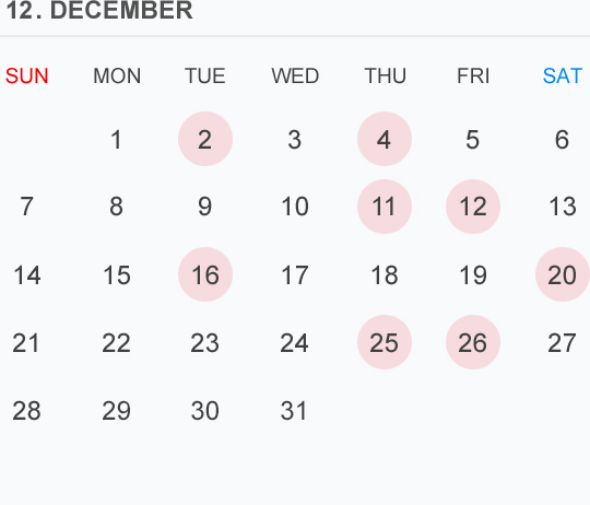 12月のカレンダー🗓です 🔴⚪️🟡はお休みを頂いております