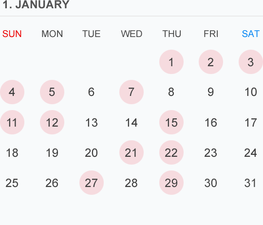1月のカレンダー🗓です 🔴⚪️🟡はお休みを頂いております