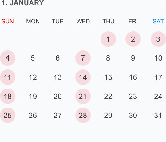 1月のカレンダー🗓です⭕️🟡⚪️はお休みいただいております
