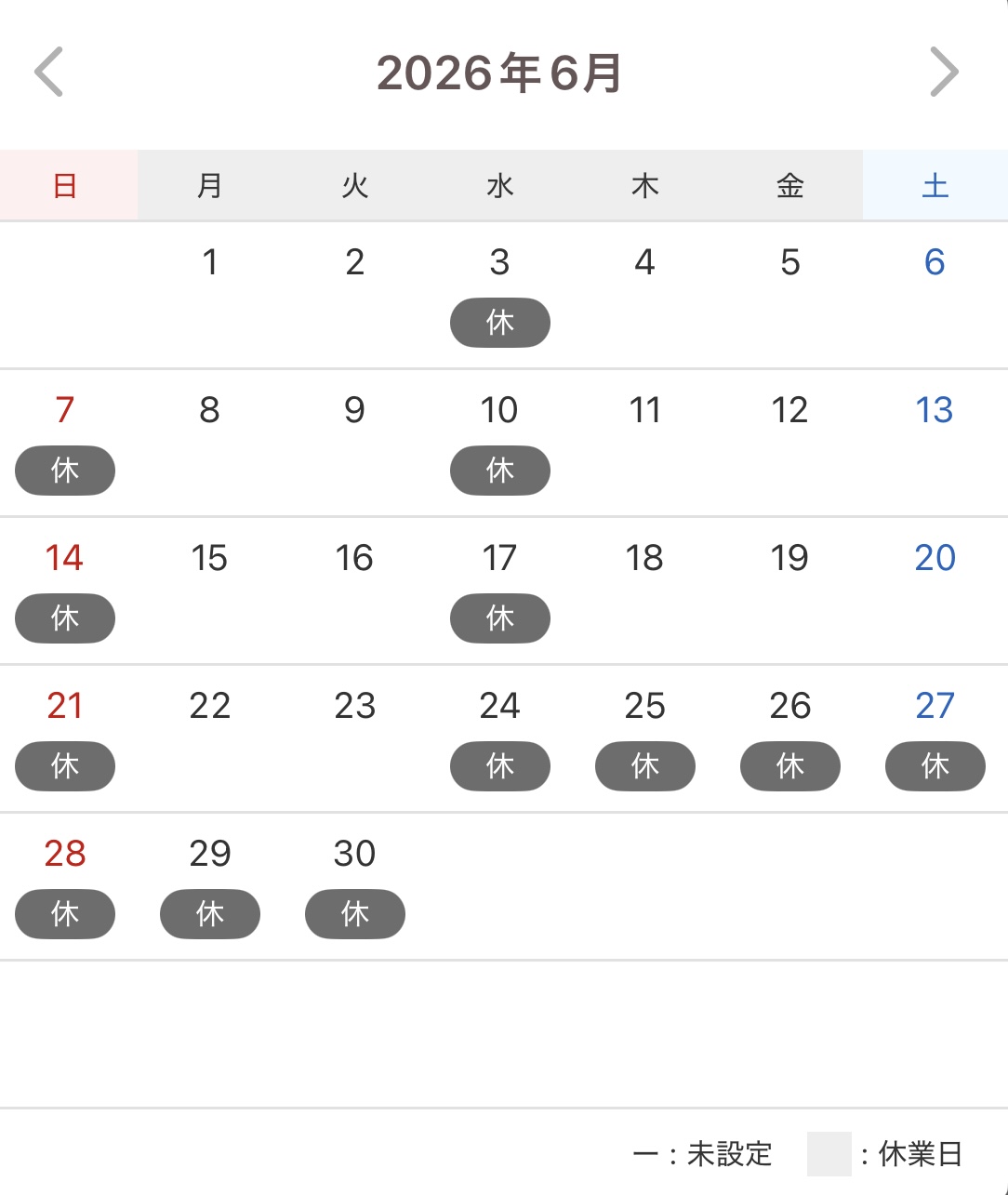 6月のカレンダー🗓です⭕️🟡⚪️はお休みいただいております