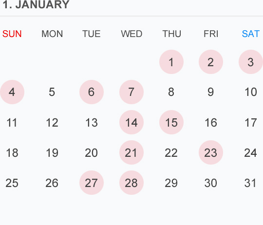 1月のカレンダー🗓です⭕️🟡⚪️はお休みいただいております
