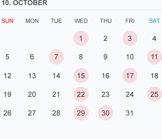 10月のカレンダー🗓です 🔴⚪️🟡はお休みを頂いております