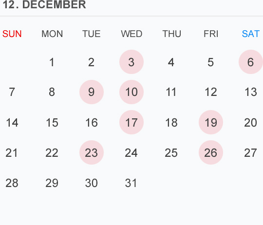 12月のカレンダー🗓です 🔴⚪️🟡はお休みを頂いております