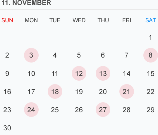 11月のカレンダー🗓です 🔴⚪️🟡はお休みを頂いております