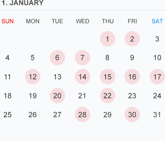 1月のカレンダー🗓です 🔴⚪️🟡はお休みを頂いております