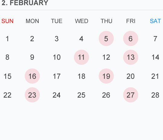 2月のカレンダー🗓です 🔴⚪️🟡はお休みを頂いております