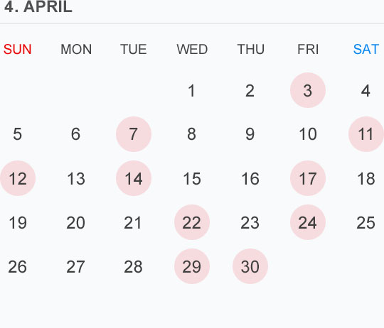 4月のカレンダー🗓です 🔴⚪️🟡はお休みを頂いております
