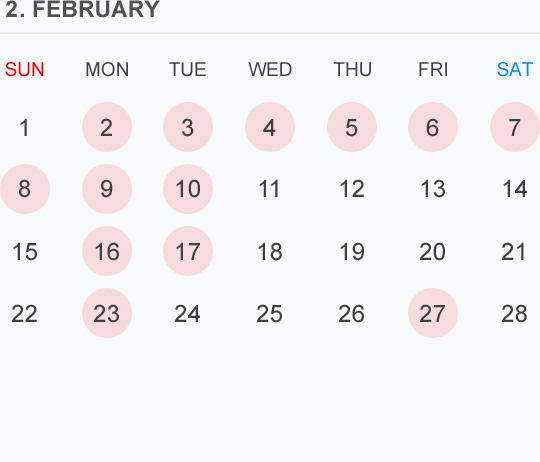 2月のカレンダー🗓です⭕️🟡⚪️はお休みいただいております