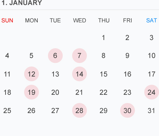 12月のカレンダー🗓です⭕️🟡⚪️はお休みいただいております