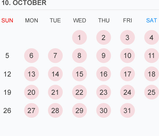 10月のカレンダー🗓です⭕️🟡⚪️はお休みいただいております