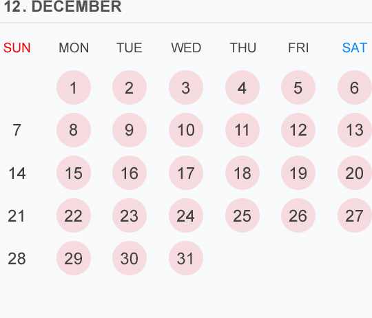 12月のカレンダー🗓です⭕️🟡⚪️はお休みいただいております
