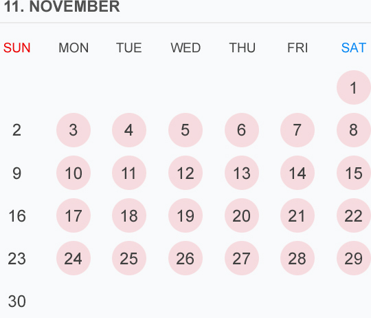 11月のカレンダー🗓です⭕️🟡⚪️はお休みいただいております