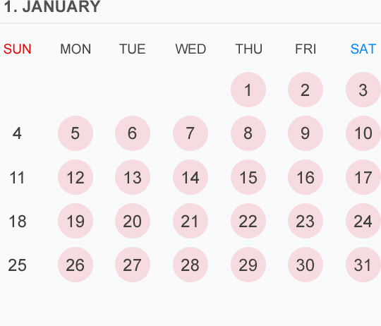 1月のカレンダー🗓です⭕️🟡⚪️はお休みいただいております