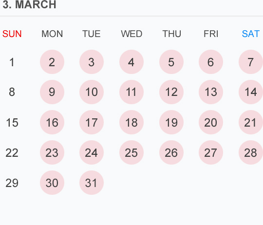 3月のカレンダー🗓です⭕️🟡⚪️はお休みいただいております