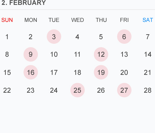 2月のカレンダー🗓です 🔴⚪️🟡はお休みを頂いております
