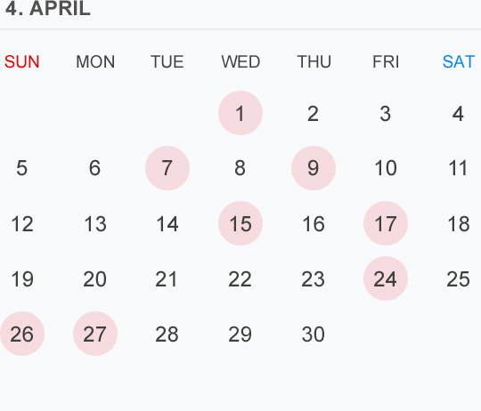 4月のカレンダー🗓です 🔴⚪️🟡はお休みを頂いております