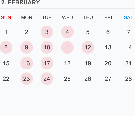 2月のカレンダー🗓です⭕️🟡⚪️はお休みいただいております