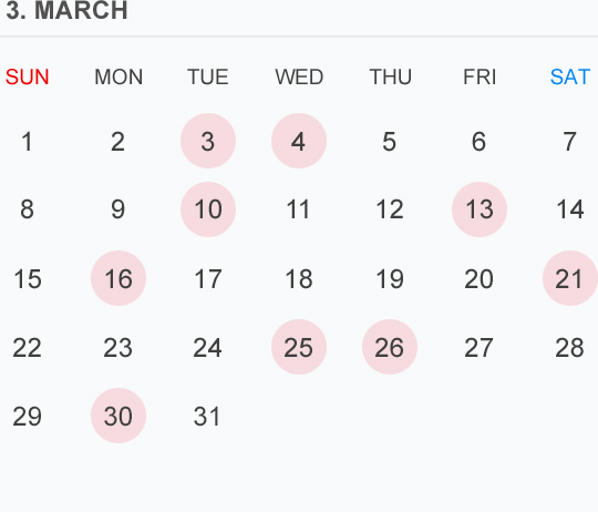 3月のカレンダー🗓です 🔴⚪️🟡はお休みを頂いております