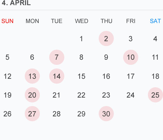 4月のカレンダー🗓です 🔴⚪️🟡はお休みを頂いております
