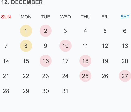 12月のカレンダー🗓です 🔴⚪️🟡はお休みを頂いております