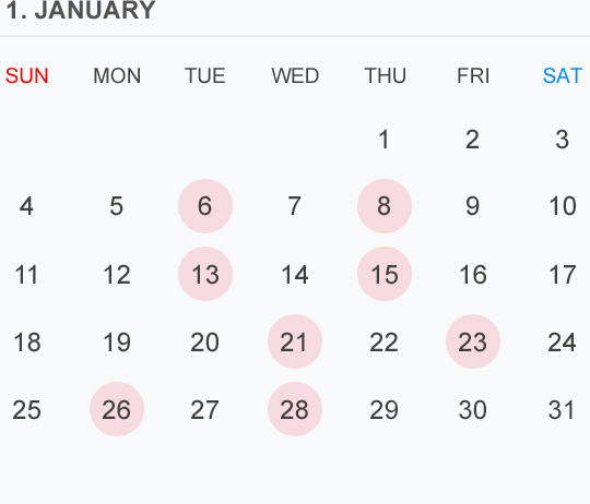 1月のカレンダー🗓です⭕️🟡⚪️はお休みいただいております
