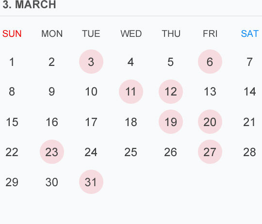 3月のカレンダー🗓です⭕️🟡⚪️はお休みいただいております