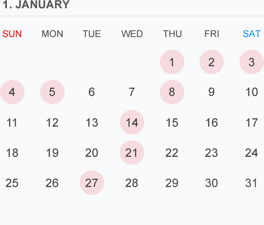 1月のカレンダー🗓です⭕️🟡⚪️はお休みいただいております