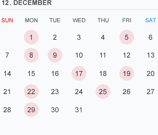 12月のカレンダー🗓です⭕️🟡⚪️はお休みいただいております