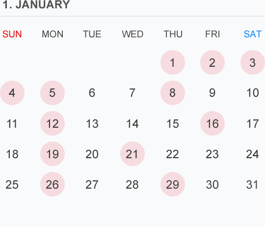 1月のカレンダー🗓です⭕️🟡⚪️はお休みいただいております