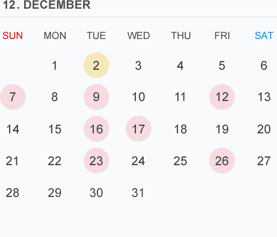 12月のカレンダー🗓です 🔴⚪️🟡はお休みを頂いております