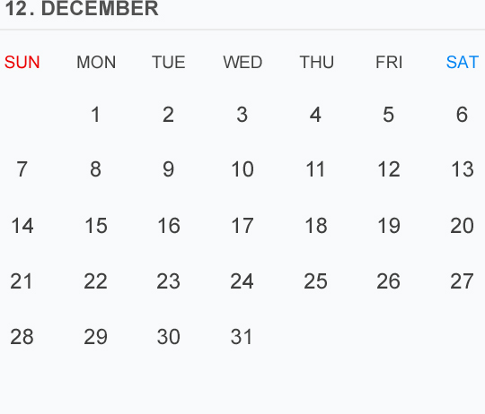 12月のカレンダー🗓です⭕️🟡⚪️はお休みいただいております