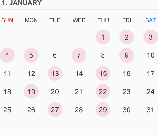 1月のカレンダー🗓です⭕️🟡⚪️はお休みいただいております