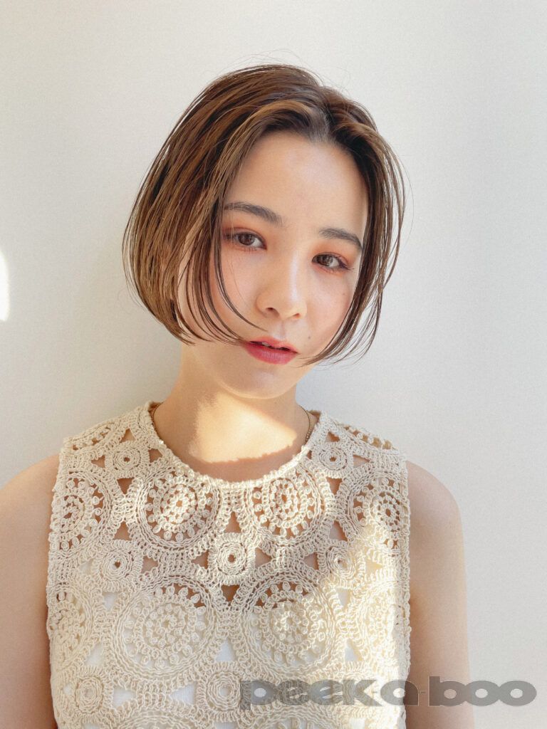 顔まわりや首回りをコンパクトにする事で、丸みのあるショートになっています。