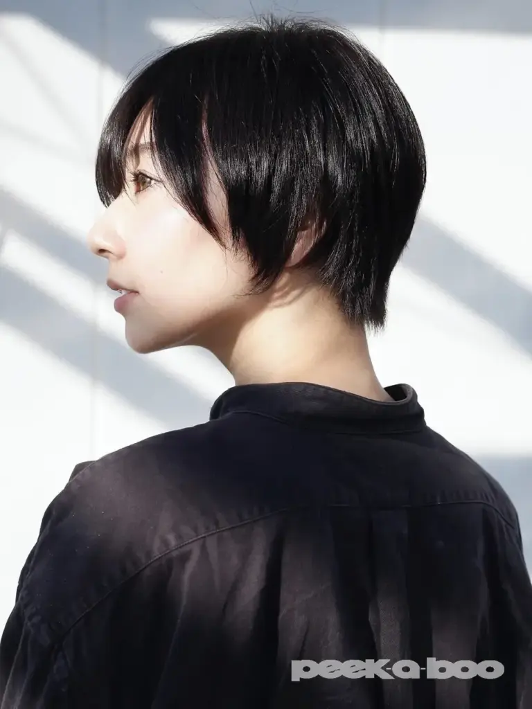 黒髪でも、カラーをしても雰囲気の出るショートヘアです。